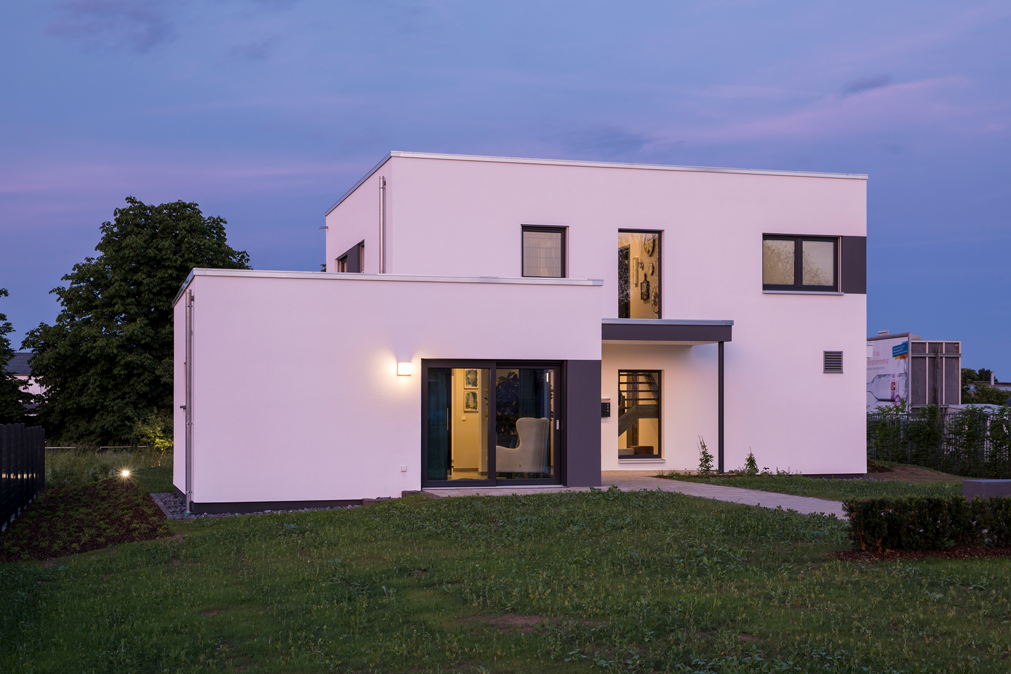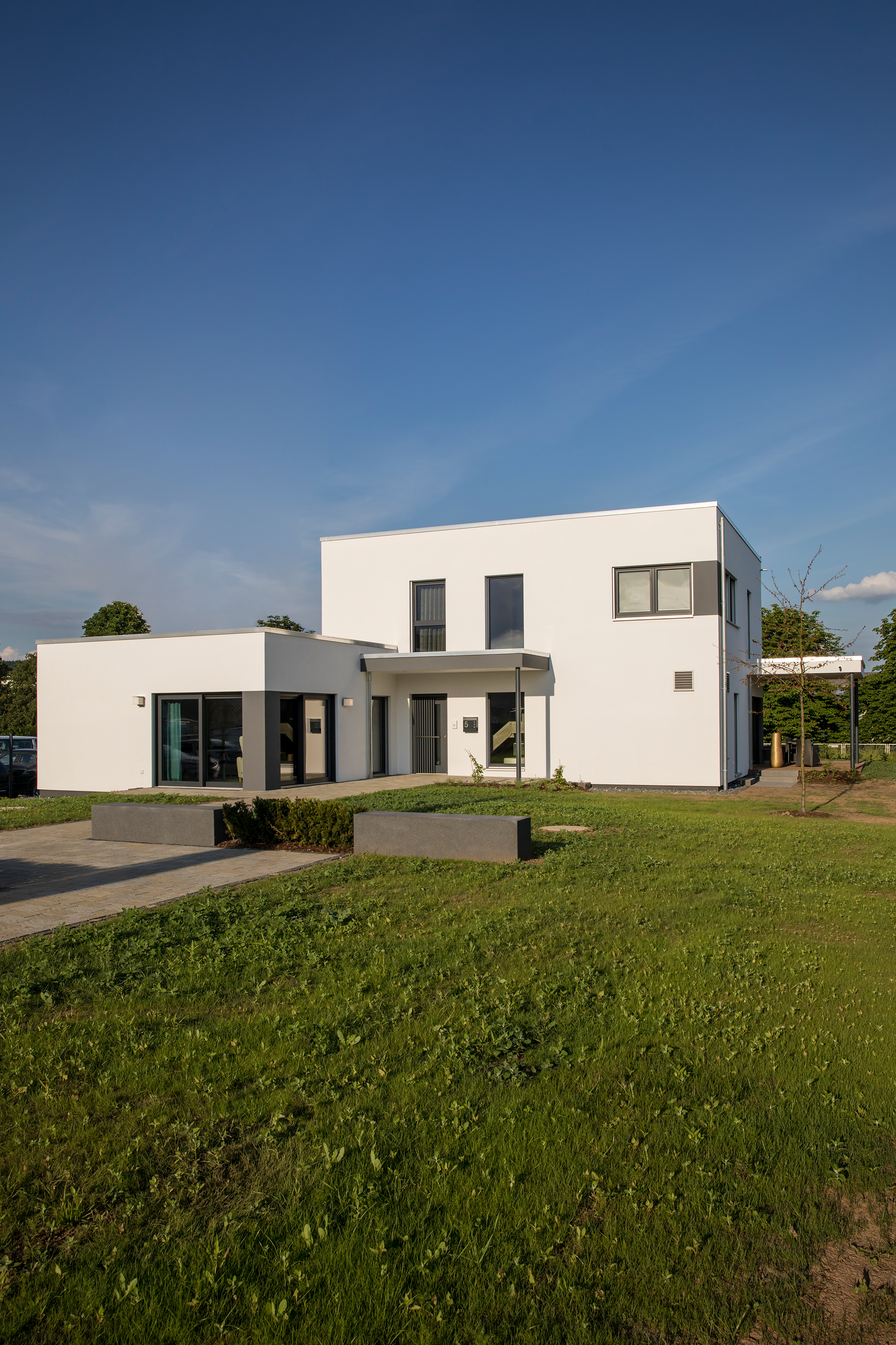 Zweimal Großzügigkeit und Offenheit in einem Haus: Der Wohn-/Essbereich mit offener Küche überzeugt in beiden Wohneinheiten und bietet entsprechend Platz. Im Dachgeschoss befindet sich ein zusätzliches Gäste- oder Arbeitszimmer und ein praktischer Abstellraum. Die Wände zwischen den Wohneinheiten sind bei allen MAXIM-Entwürfen (nach Erfordernis) Wohnungstrennwände mit noch besserem Schallschutz.